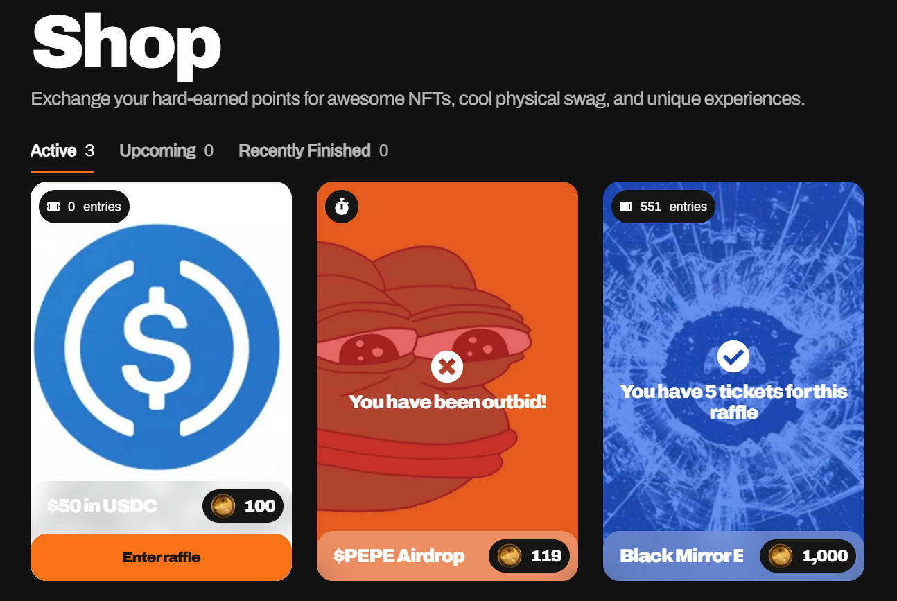 Reward your community with off-chain points, on-chain tokens, NFTs, Discord roles, physical swag, or just about anything else you can think of!